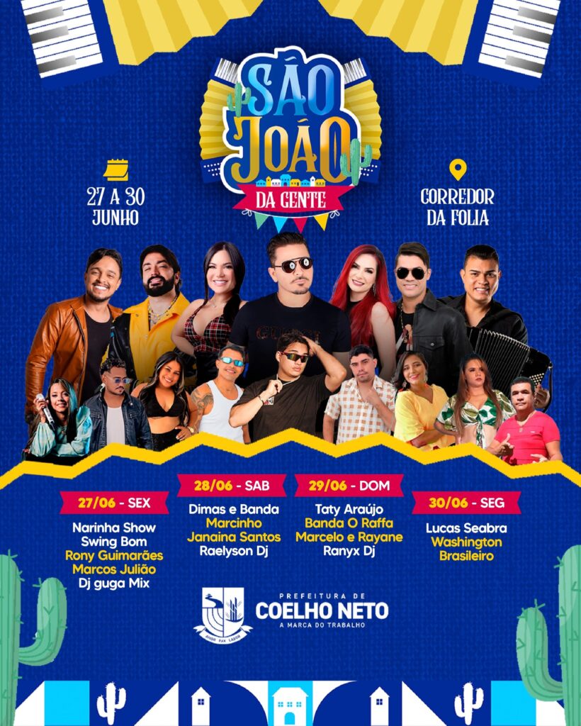 “O São João de Coelho Neto já é uma tradição esperada por todos os moradores e visitantes. Este ano, além de valorizarmos os artistas locais e regionais, também traremos grandes atrações para garantir uma festa bonita, segura e organizada para todas as famílias”, ressaltou o prefeito.